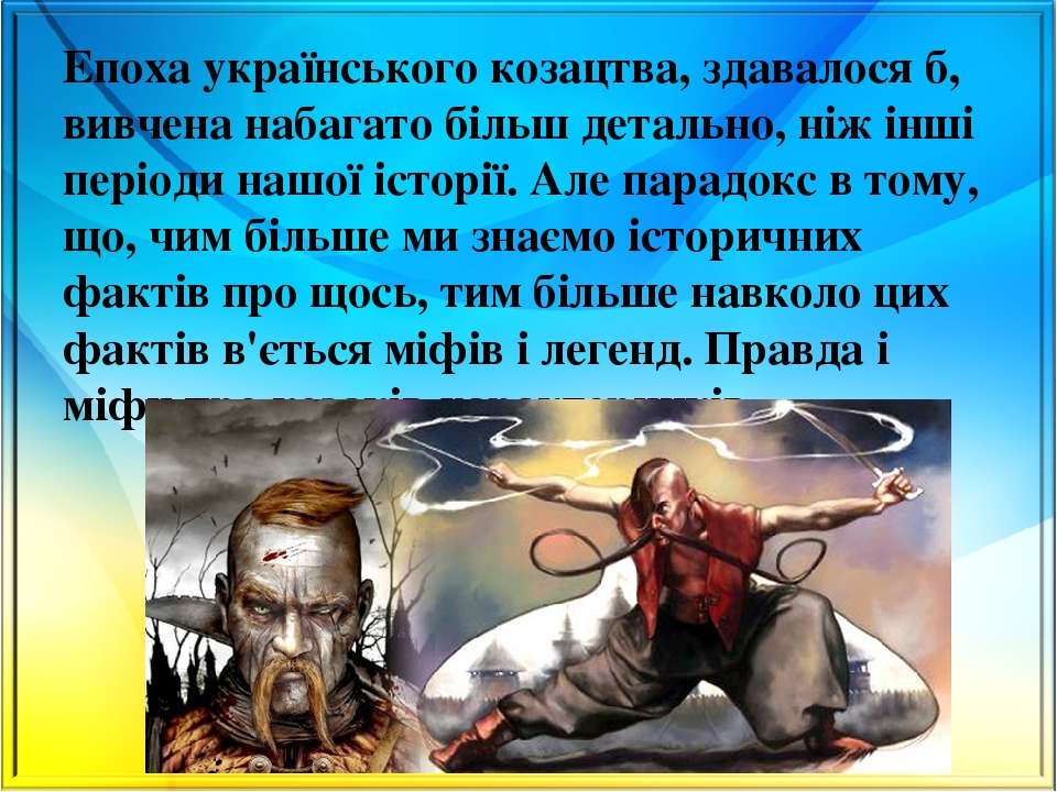 Епоха українського козацтва, здавалося б, вивчена набагато більш детально, ніж інші періоди нашої історії. Але парадокс в тому, що, чим більше ми знаємо історичних фактів про щось, тим більше навколо цих фактів в'ється міфів і легенд. Правда і міфи про козаків-характерників.